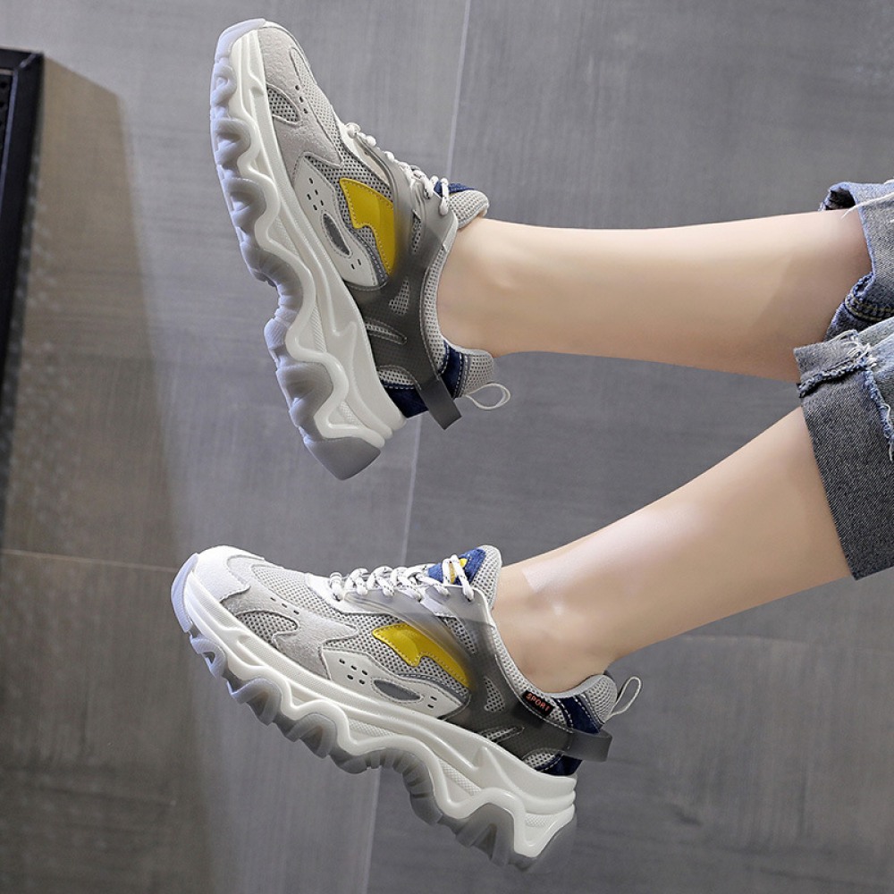 Spring New Student Sports Shoes Women's Running Thick-Soled Height Increase Shoes Women