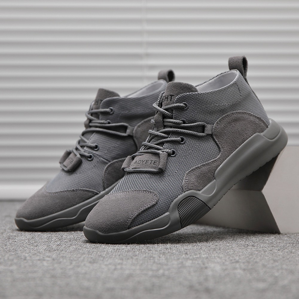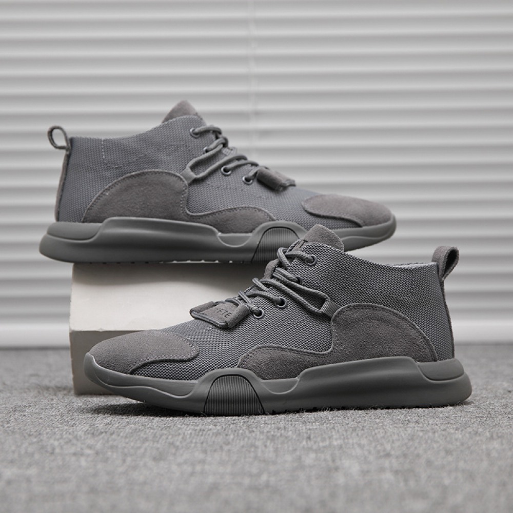 Men's Running Shoes Breathable Knit Slip On Sneakers Lightweight Athletic Shoes Casual Sports Shoes High Top All Grey