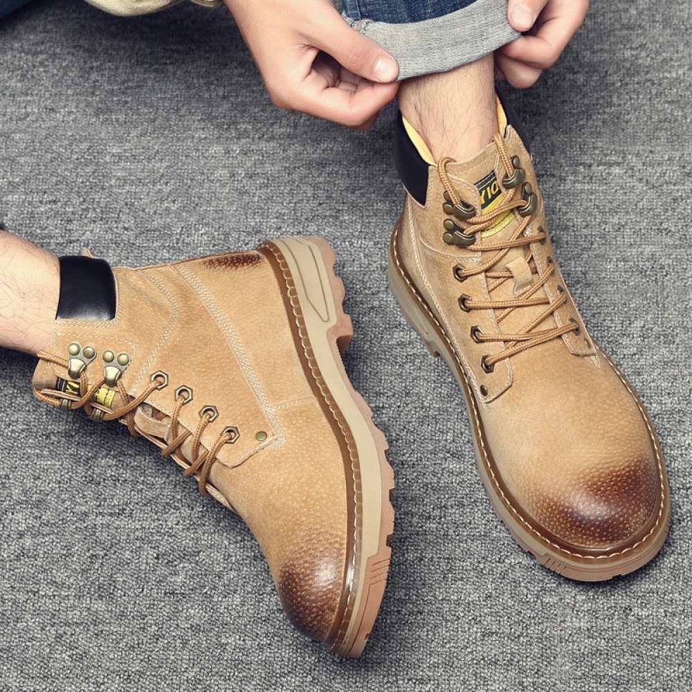 Martin Boots Men's Autumn New Leather Boots Casual Mid-Cut Tooling Boots High-Top Mens Shoes